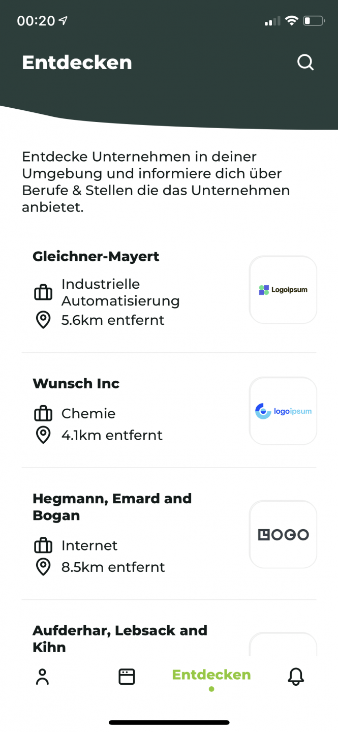 beAzubi - App - Unternehmens-Profil innerhalb der App