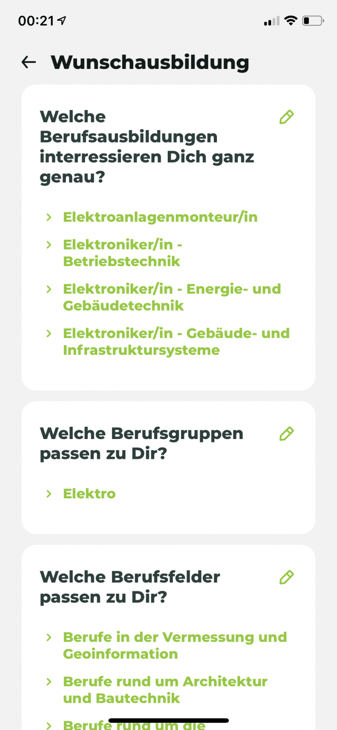 beAzubi - Schüler-Profil Darstellung innerhalb der App